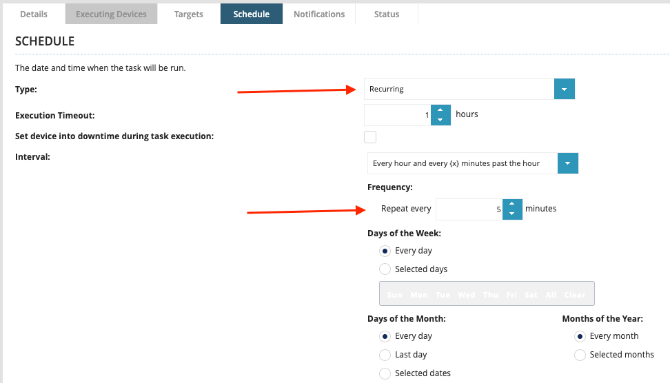 - On the Automation Policy Task\Schedule tab, ensure that it is set to Recurring and to repeat every 5 minutes.