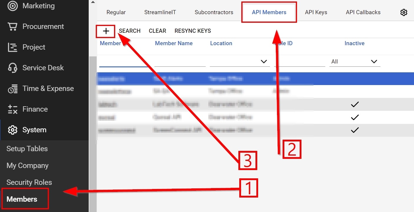 3. Click on the "+" to get to the screen for creating your new API member.