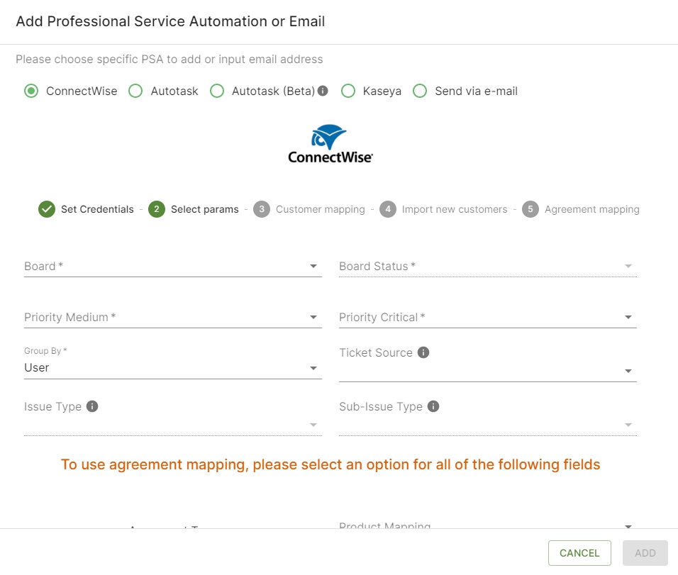 Adding the ConnectWise Manage Connection