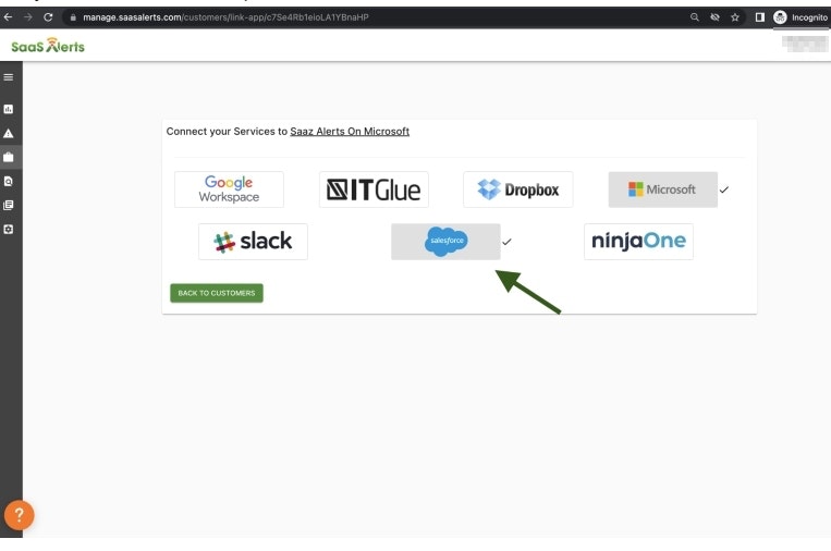 Select the Sales Force Connection Icon from the Services Connection Screen